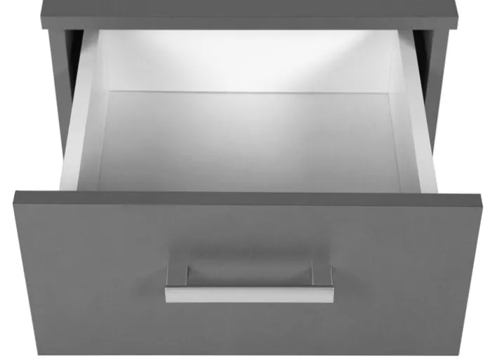 Die Kommode ROBERT 2 in Grau besticht mit einem schlichten, modernen Design. Sie ergänzt die Möbel der Robert-Serie und lässt sich für verschiedene Wohnräume verwenden.