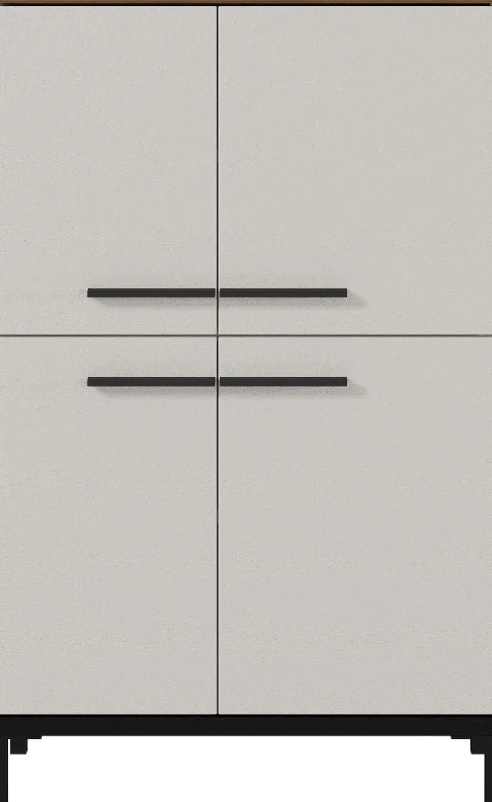 Die Kommode YONKERS ist Teil der gleichnamigen Badmöbelserie, kann aber dank ihrem eleganten Äußeren auch gut in Schlafzimmer oder Diele Platz finden. Das 97 cm hohe und 67 cm breite Möbelstück bietet viel Stauraum zur Unterbringung von Handtüchern und Wäsche, Gebrauchsgegenständen oder Hygieneartikeln. Dazu sind hinter den vier Drehtüren insgesamt vier durchgehende Ablageflächen vorhanden.