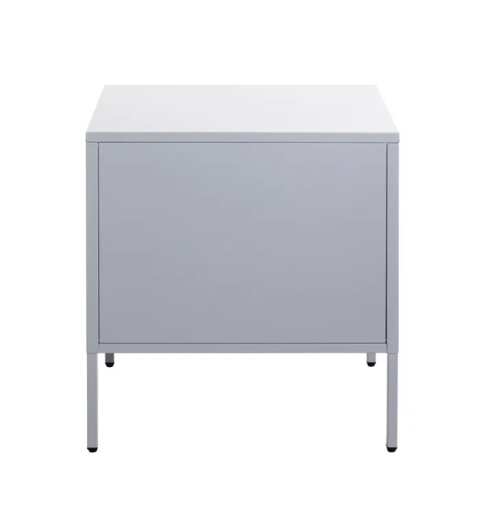 Die formschöne Konsole im Farbton Silbergrau hat ein zeitloses Design und wertet den modern eingerichteten Schlafbereich auf. Neben einem Polster- oder Boxspringbett kommt die Konsole mit den Maßen 45 x 50 cm gut zur Geltung. Die Oberplatte und ein offenes Fach bieten Platz für eine Nachttischlampe, die Bettlektüre und eine Brille. Private Accessoires sind blickdicht hinter einer Drehtür untergebracht. Die Konsole hat einen industriellen Charme und schafft ein wohnliches Ambiente.