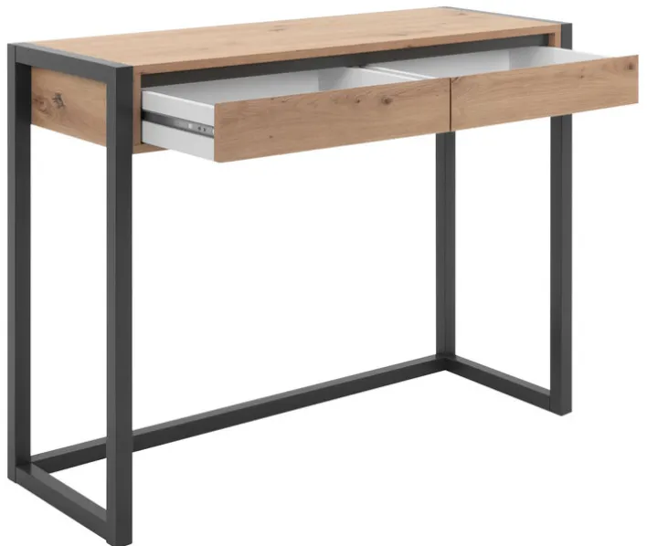 In den beiden nebeneinander angeordneten Schubladen der Konsole DENVER lassen sich hübsche Platzdeckchen oder dekorative Kleinigkeiten aufbewahren. Auch elektronische Geräte, gesammelte Briefe oder das Tagebuch sind hier gut aufgehoben. Auf der hübschen Tischplatte im Farbton Artisan Eiche lassen sich Vasen oder Topfpflanzen, Kunstgegenstände oder geschmackvolle Leuchter liebevoll arrangieren.