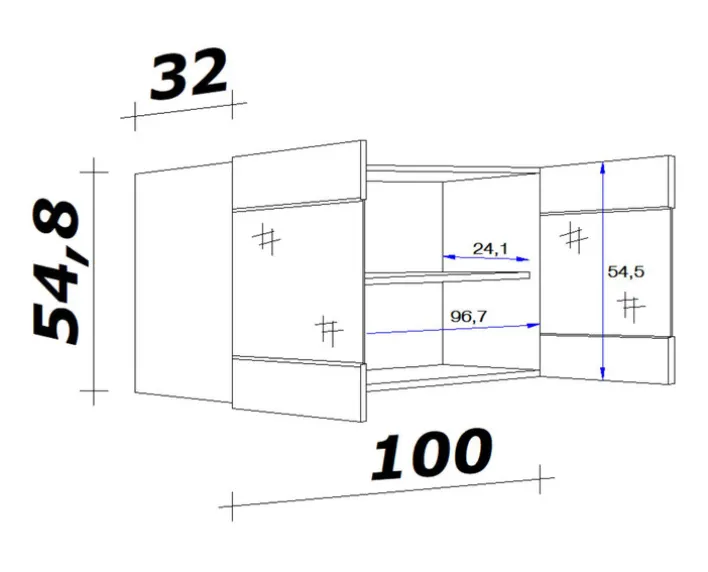 Breite: 100 cmHöhe: 54 cmTiefe/Ausladung: 32 cmGewicht: 21,2 kg