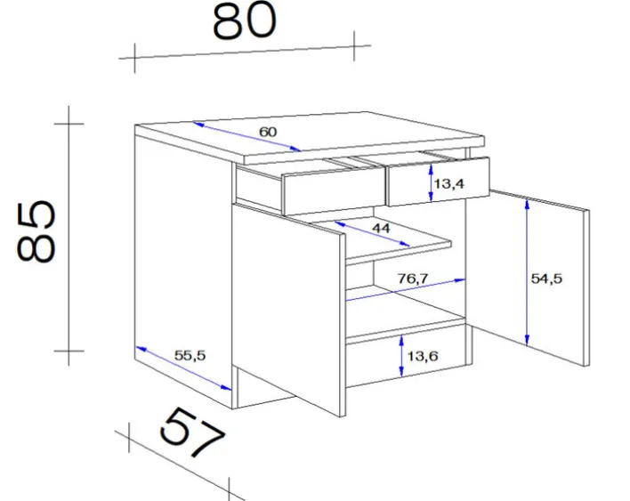 Breite: 80 cmHöhe: 85 cmTiefe/Ausladung: 60 cmGewicht: 42,3 kg