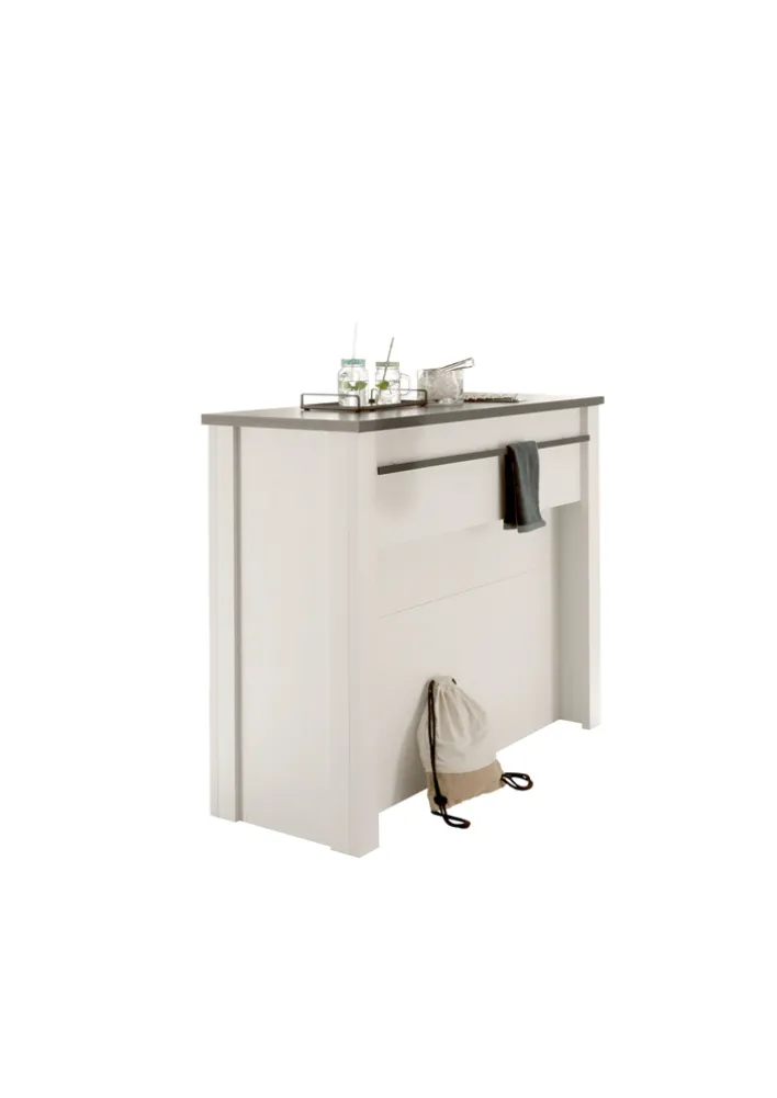 Der Küchenschrank aus der Serie SHERWOOD präsentiert sich in einem eleganten Design, das sich nahtlos in moderne Küchen einfügt. Mit einer Breite von 130 cm, einer Höhe von 106 cm und einer Tiefe von 52 cm bietet er ausreichend Stauraum für Küchenutensilien. Der Schrank besteht aus Holznachbildung und ist in einem ansprechenden Pinie Weiß gehalten, das für eine helle und freundliche Atmosphäre sorgt.