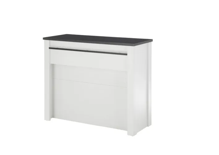 Ein besonderes Merkmal ist die kontrastreiche schwarze Oberseite, die dem Schrank eine moderne Note verleiht. Mit einem Gewicht von 69 kg steht der Schrank stabil und robust. Die klare Linienführung und das schlichte Design machen ihn zu einem vielseitigen Möbelstück, das sowohl funktional als auch ästhetisch ansprechend ist.