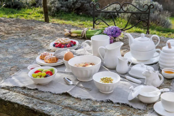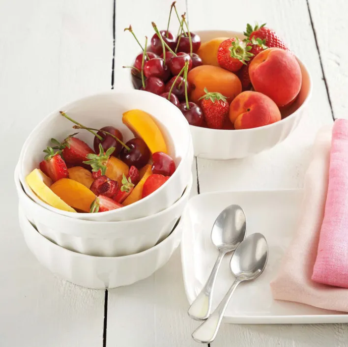 Die Schale PIEVE aus weißem Porzellan hat einen Durchmesser von 22 cm. Die runde Schale ist mikrowellenfest und lässt sich in der Spülmaschine reinigen.