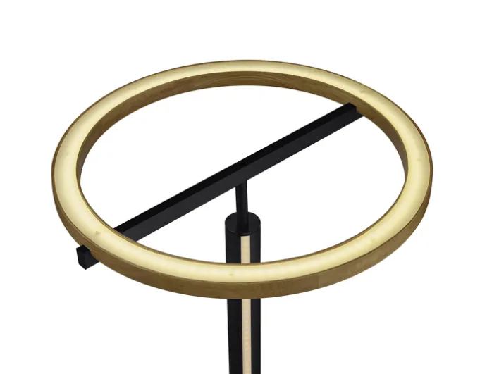 Die LED-Stehlampe der Serie NELLA vereint modernes Design mit funktionaler Beleuchtung. Mit einer Höhe von 182 cm und einem Durchmesser von 50 cm fügt sich die Lampe harmonisch in verschiedene Wohnräume ein. Die Hauptfarben Braun und Schwarz verleihen der Lampe eine elegante Optik, die durch die Kombination aus Holz und Metall unterstrichen wird. Der runde Lampenschirm aus Holz sorgt für eine warme Ausstrahlung, während der schwarze Metallfuß Stabilität bietet.