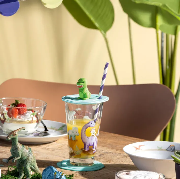 Mit einem Durchmesser von 9.7 cm passt der Deckel perfekt auf die BAMBINI AVVENTURA Dinosaurier Gläser. Und auf viele andere Lieblingsgläser. Als Griff dient ein lustiger, frecher Dino, der die Zähne fletscht. Er hat selbstverständlich keine spitzen Ecken und Kanten, aber selbst kleine Kinder können ihn gut greifen, dank des runden Kopfes. Das für den Deckel verwendete Silikon ist selbstverständlich lebensmittelecht. So schützt es die Inhalte von Gläsern vor Wespen und anderen Insekten. Gleichzeitig ist es eine einfache Möglichkeit, ein Glas individuell zu markieren.