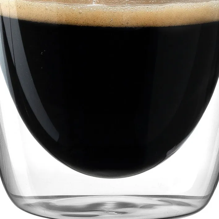 Nach Gebrauch dürfen sie in die Spülmaschine. Doch zunächst gilt es, den Espresso aus diesen Tassen besonders zu genießen. Sie kombinieren das Prinzip einer Tasse mit klarem Glas. Herausgekommen ist ein Set, das auf der ganzen Linie überzeugt. Diese Becher kommen ohne Henkel aus. Das Glas lässt sich jedoch gut anfassen, denn es ist doppelwandig gearbeitet. Dieser Umstand sorgt für eine schicke Optik. Zudem lassen sich diese Espressotassen mit jedem Geschirr kombinieren.