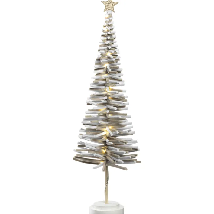 Die LED-Beleuchtung der modernen Tanne aus Filz und Kunststoff funktioniert mit drei Batterien der Sorte AAA. Das für den Dauerbetrieb geeignete Modell verfügt über einen praktischen Timer. Die nur 190 Gramm leichte Weihnachtsdekoration steht sicher auf ebenen Flächen wie einem Glastisch. Das Modell überzeugt sowohl einzeln als auch in der Gruppe, wenn es als Teil eines kleinen Winterwaldes arrangiert ist.