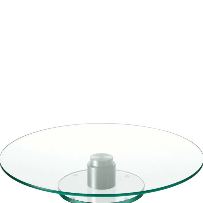 Die Tortenplatte eignet sich für den Einsatz im Innenbereich und ermöglicht durch die Drehfunktion eine komfortable Handhabung beim Servieren von Kuchen oder Torten. Alle sichtbaren Elemente sind klar gestaltet, wobei das Glas ohne Verzierungen auskommt und der silberfarbene Standfuß einen modernen Akzent setzt. Die Verarbeitung und Materialauswahl unterstreichen die Eignung für den täglichen Gebrauch.