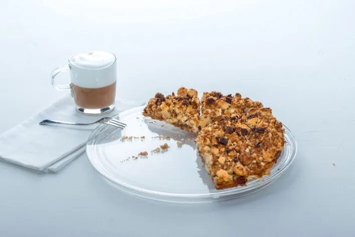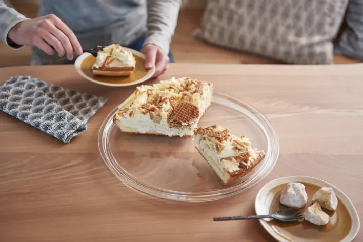 Die schlichte Tortenplatte punktet mit ihrem erhobenen Rand – so lässt sie sich problemlos tragen.