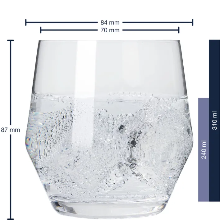 Gefertigt aus lebensmittelgerechtem Kristallglas, überzeugt das Glas nicht nur durch seine Ästhetik, sondern auch durch seine Funktionalität. Es ist ideal für den täglichen Gebrauch geeignet und bietet eine angenehme Haptik. Die klare Transparenz des Glases ermöglicht eine ansprechende Präsentation von Getränken, während die stabile Form für eine sichere Handhabung sorgt. Dieses Glas ist eine ausgezeichnete Wahl für alle, die Wert auf Qualität und Design legen.