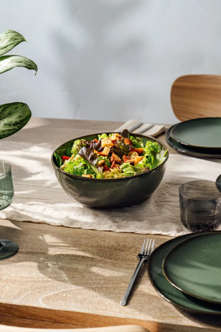 Die Salatschüssel aus der Serie LAVE VERT besticht durch ihr elegantes Design und die harmonische grüne Farbgebung. Gefertigt aus hochwertigem Steingut, bietet sie nicht nur eine ansprechende Optik, sondern auch eine robuste und langlebige Qualität. Mit einer Breite von 10,7 cm, einer Höhe von 25,5 cm und einer Tiefe von 25,4 cm ist sie ideal für den täglichen Gebrauch geeignet.