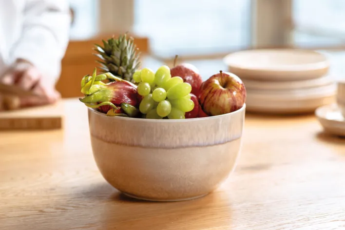 Die braune Schüssel PERLEMOR SAND von like. besticht durch eine dekorative Gestaltung und vielfältige Verwendungsmöglichkeiten. Sie ist 12,5 cm hoch und kann zu jeder Mahlzeit auf den Tisch kommen. Sie eignet sich zum Beispiel zum Bereitstellen von gesundem Obst oder um Beilagen oder Salate zu reichen. Die like. Schüssel PERLEMOR SAND ist auch optisch eine Bereicherung und fügt sich harmonisch in jede Tischdekoration ein.