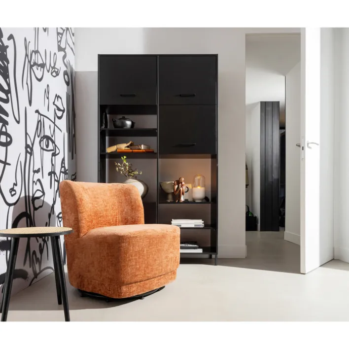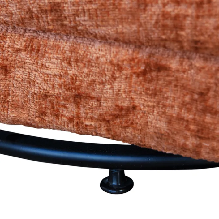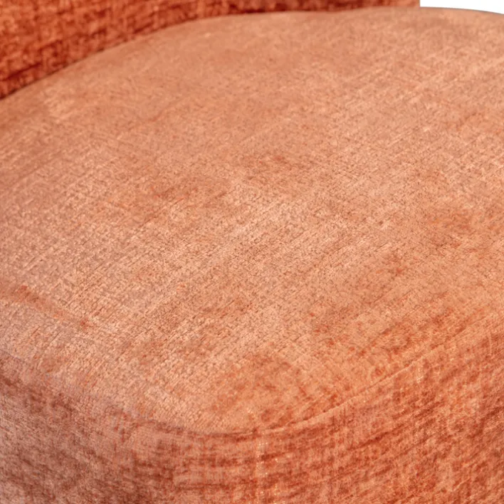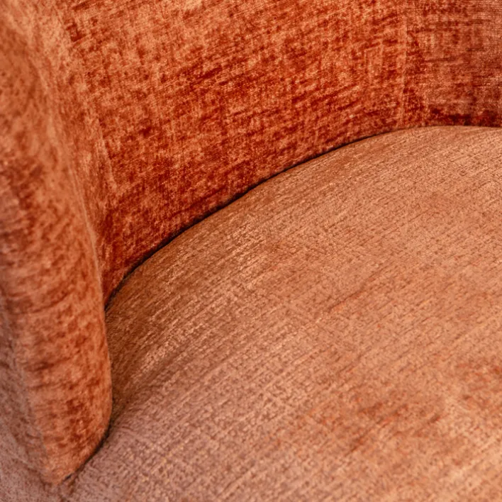 Der Loungesessel ATTY misst 74 x 75 x 65 cm und ist mit seinem rostroten Samtbezug ein Eyecatcher. Allerdings sieht der Bezug nicht nur gut aus, mit einer Scheuerbeständigkeit von 40.000 ist er zudem sehr langlebig. Der Sessel ist darüber hinaus angenehm gepolstert und mit einer runden Rückenlehne ausgestattet. Für einen hohen Sitzkomfort ist somit gesorgt. Ein weiterer Pluspunkt des Loungesessels ist sein drehbares Gestell. Dieses ermöglicht es sich frei zu bewegen und unterstützt eine entspannte Körperhaltung.
