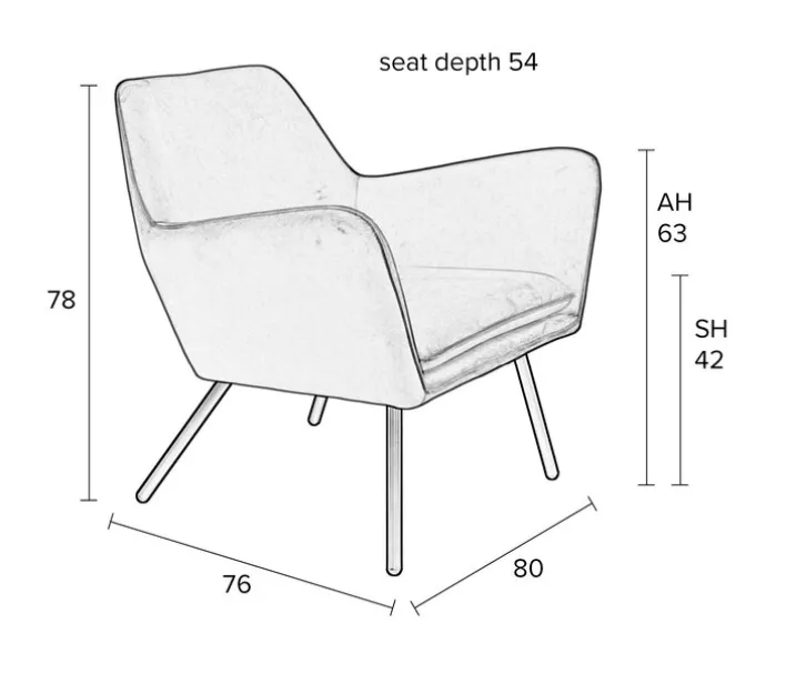 Breite: 80 cmHöhe: 78 cmTiefe/Ausladung: 76 cmSitztiefe: 54 cmSitzhöhe: 42 cmHöhe Armlehne: 63 cm