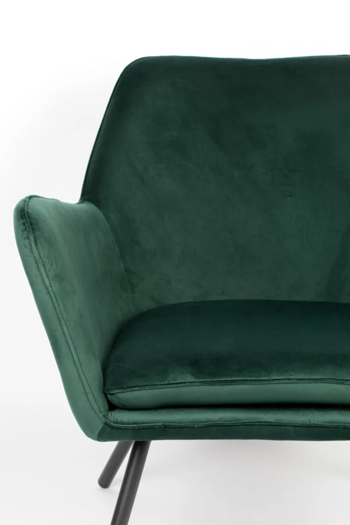 „Zeitlos elegant im angesagten Retro-Stil. Mit dem schicken Sessel BON zieht der Charme der 1960er-Jahre in das modern eingerichtete Wohnzimmer ein. Durch den attraktiven Bezug in der Farbe dunkelgrün und das schwarzfarbige Vierfußgestell fällt der Sessel sofort ins Auge und ist vielseitig mit bereits bestehenden Einrichtungen kombinierbar. Gleichzeitig gewährleistet der Sessel einen hohen Sitzkomfort und ist ideal für einen gemütlichen Fernsehabend oder zum Lesen der Tageszeitung.