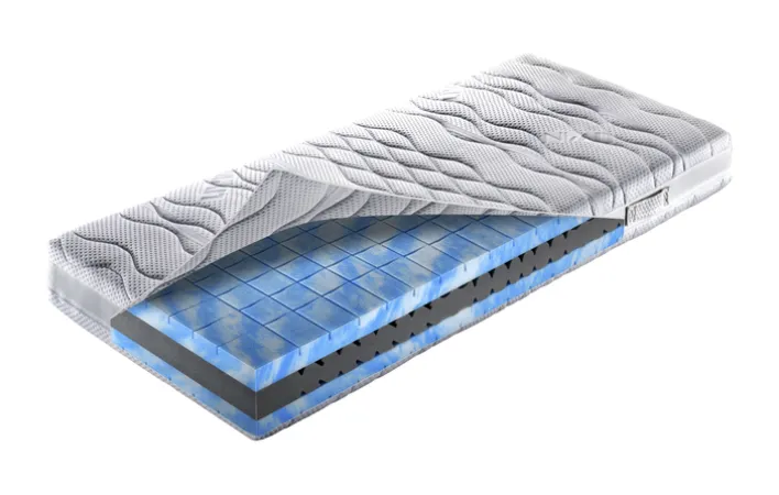 Die Kaltschaummatratze der Serie EUBOA bietet eine Liegefläche von 90 x 200 cm und ist ideal für Einzelbetten geeignet. Mit einem Härtegrad von 2 sorgt sie für eine mittlere Festigkeit, die optimalen Komfort und Unterstützung bietet. Der Kaltschaumkern ist in sieben Zonen unterteilt, um eine ergonomische Anpassung an den Körper zu gewährleisten. Die Matratze ist mit einem praktischen Reißverschluss ausgestattet, der das Abnehmen und Reinigen des Bezugs erleichtert. Die Matratze präsentiert sich in einem eleganten Weiß und besteht aus hochwertigem Textilmaterial. Der Bezug zeigt ein modernes, wellenförmiges Muster, das nicht nur ästhetisch ansprechend ist, sondern auch für eine gute Belüftung sorgt. Die Kombination aus blauen und grauen Schichten im Inneren der Matratze verleiht ihr eine ansprechende Optik und unterstützt die Funktionalität des Kaltschaumkerns. Mit einer Höhe von 22 cm und einem Gewicht von 16,40 kg ist die Matratze leicht zu handhaben und bietet gleichzeitig eine stabile Liegefläche.
