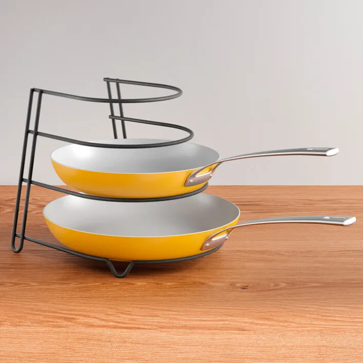 Die schwarze metaltex Bratpfannenablage CANYON bietet auf vier Ablagen Platz um Bratpfannen zu verstauen und lässt die Küche im Handumdrehen aufgeräumter aussehen.