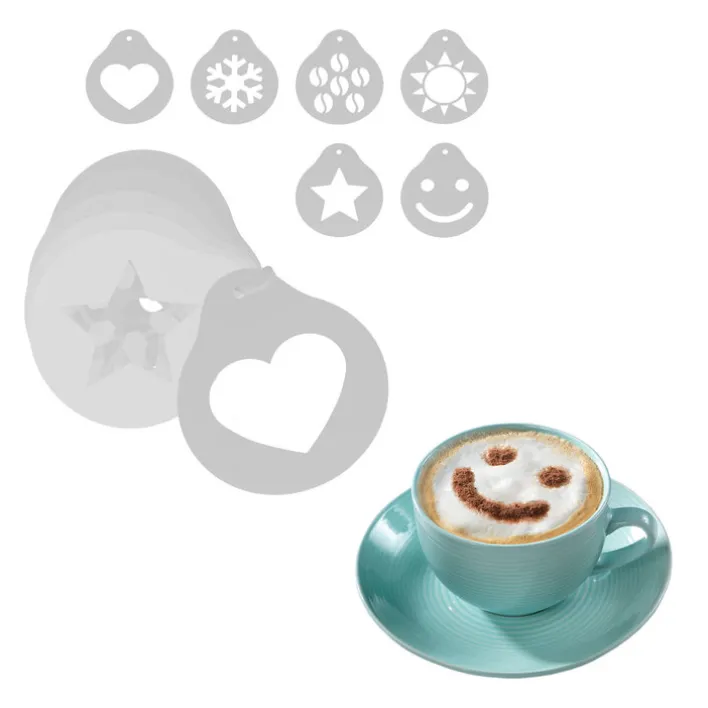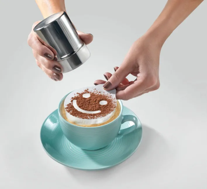 Insgesamt sechs verschiedene Schablonen sorgen für Abwechslung auf Kakao und Cappuccino. Während im Winter ein Eiskristall begeistert, ist es bei warmen Temperaturen die Sonne. Der Liebste freut sich über ein Herz auf dem Getränk, Kinderaugen strahlen, wenn sie von einem Smiley lächelnd begrüßt werden. So werden die sechs Schablonen ganzjährig und zu jedem Anlass zum dekorativen Küchenhelfer.