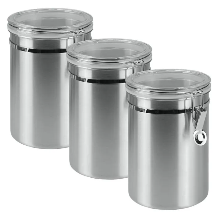 Mit ihrem schlicht-eleganten Look sind die runden metaltex Vorratsdosen ein Blickfang in der Küche und bestens zur Lebensmittelaufbewahrung geeignet. Dank des transparenten Deckels ist der Inhalt sofort ersichtlich. Das Set umfasst drei identische Metalldosen der Serie VORA.