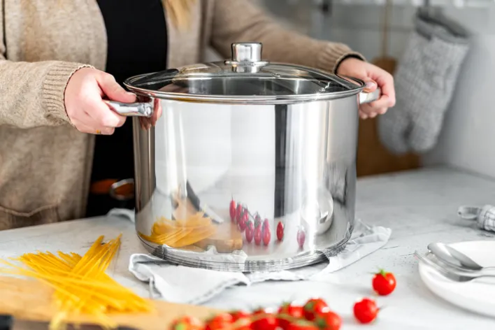 Der Großraumtopf des Labels MICHELINO umfasst sage und schreibe 14 Liter. Er ist aus Edelstahl gefertigt und eignet sich für Alle, die für eine Großfamilie kochen. Ganz gleich, ob es um die Zubereitung umfangreicher Essensmengen oder um das Garen voluminöser Lebensmittel geht: Der Großraumtopf begeistert mit seinem großzügig bemessenen Fassungsvermögen und ist dennoch kompakt designt. So wird der im Schrank zur Verfügung stehende Lagerraum optimal genutzt.