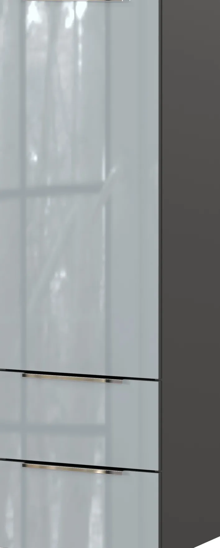 Bevor im Bad Chaos herrscht, sorgt der 36 x 111 x 34 cm große Midischrank JAN in Graphit/Silbergrau im Handumdrehen für Ordnung. Kein Wunder: Hinter der Drehtür und in den beiden Schubkästen ist richtig viel Platz!