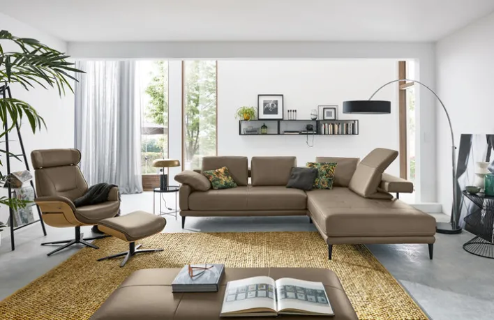 Was den Sessel von Musterring auszeichnet, ist sein ansprechender Mix unterschiedlicher Stoffe. Für eine angenehme Haptik sorgt natürlich der Lederbezug in Braun, der sich mit der Sitzschale in Holz-Optik perfekt ergänzt. Darunter bildet das metallische Standgestell den gelungenen Abschluss. Auch in Sachen Flexibilität weiß der mit einer Memory-Funktion ausgestattete Relaxsessel zu überzeugen, da er sich drehen und seine Rückenlehne sich verstellen lässt – der ideale Komplize fürs Wohnzimmer!