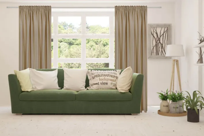 Vorhänge brechen nicht nur den Schall und sorgen für eine angenehme Akustik, sondern sie nehmen auch Düfte aus dem Raum auf. Deshalb macht es Sinn, wenn MY DECO den Schlaufenvorhang DOT aus reinem Polyester fertigt. Das weiche, feine Material fällt nicht nur schön, sondern ist auch bei bis zu 30 Grad Celsius in der Maschine waschbar. Der sandfarbene Schlaufenvorhang passt in alle hell eingerichteten Wohnräume im Scandi-, Retro- oder modernen Stil und schafft durch den zarten Farbton eine Verbindung zwischen weißen Wänden und naturfarbenen Holzmöbeln.