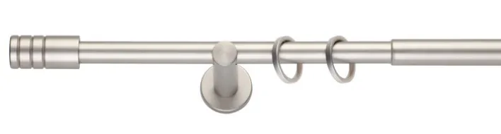 Bei der Teleskopgarnitur RILLCUBE – gefertigt im klassischen Silber und in der Länge 160 – 280 cm – handelt es sich um ein Set. Dieses besteht aus einer Gardinenstange, drei Trägern und dazu passendem Zubehör wie Dübel und Endstücke. Sie eignet sich für einen leichten Behang – unter anderem in Form von luftigen Schlaufenvorhängen. Ebenso lässt sich von der Teleskopgarnitur ein mittelschwerer Behang tragen.