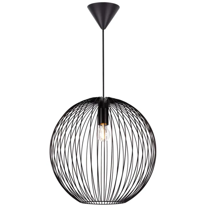 Die Nordlux Retrofit Pendelleuchte BERONI hat einen Durchmesser von 45 cm und eine Höhe von 43 cm. Die Länge der Zuleitung beträgt 200 cm. Die Hängelampe ist aus schwarzem Metall und wiegt 1,65 kg.