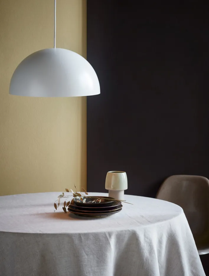 Die ELLEN Pendelleuchte ist eine Retrofit-Hängelampe aus dem Hause Nordlux, die aus Metall gefertigt ist und über einen weißen, runden Schirm im Durchmesser von 40 cm verfügt. Sie vereint Eleganz und den modern-klassischen Skandi-Style, zeichnet sich durch erstklassige Qualität aus und ist bei der Montage flexibel in der Länge einstellbar.