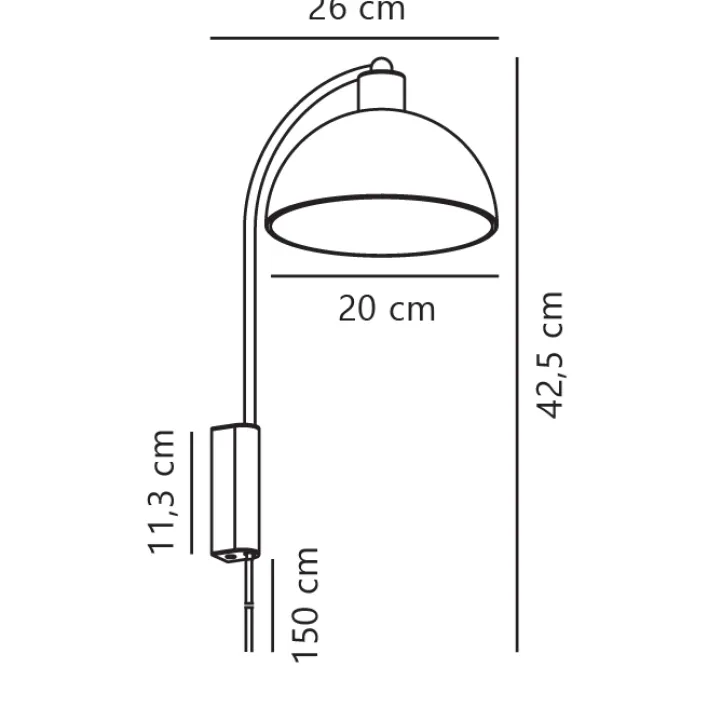 Die Nordlux Retrofit Wandleuchte ELLEN mit Schnurschalter hat einen Durchmesser 20 cm. Sie ist insgesamt 26 cm breit und tief, die Höhe beträgt 43 cm. Das Lampengehäuse ist aus weißem Metall und Glas.