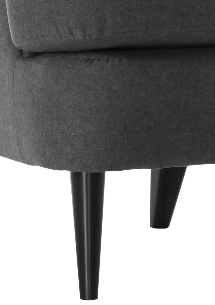 Der Sessel verfügt über eine gepolsterte Rückenlehne und feste Armteile, die für Stabilität und Langlebigkeit sorgen. Der Polsteraufbau aus Polyätherschaum bietet eine angenehme Sitzfläche, die sich ideal für längere Sitzzeiten eignet. Die schwarzen Holzfüße verleihen dem Sessel eine moderne Note und sorgen für einen stabilen Stand. Mit einem Gewicht von 24 kg ist der Sessel robust und dennoch leicht genug, um ihn bei Bedarf umzustellen. Dieses Möbelstück ist eine stilvolle Ergänzung für jedes Wohnzimmer und bietet sowohl Funktionalität als auch ästhetischen Reiz.
