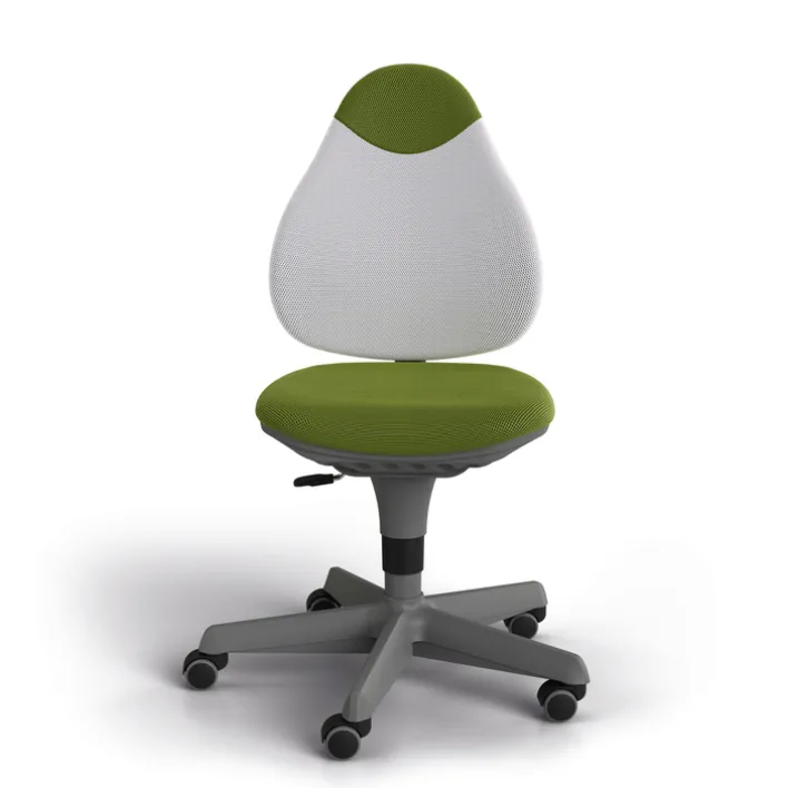 Der PAIDI Drehstuhl PEPE ist mit einem waschbaren Sitz- und Rückenlehnenbezug in Grün/Weiß ausgestattet und besitzt ein darauf abgestimmtes silberfarbenes Gestell mit stabilem Fußkreuz. Die ergonomisch geformte und in der Tiefe verstellbare Lehne entlastet den Rücken und die leicht nach unten gewölbte Sitzfläche bietet einen angenehmen Sitzkomfort. Der Sitz kann stufenlos in der Höhe reguliert werden.