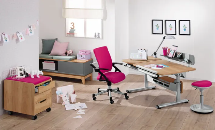 Dank der zeitlos attraktiven Farbgebung passt der Schreibtisch GT in jedes Kinderreich oder Jugendzimmer. Das Möbelstück zeichnet sich durch erstklassige Materialien in bestmöglicher Verarbeitung aus und kann sowohl Rechtshändern wie Linkshändern gute Dienste erweisen