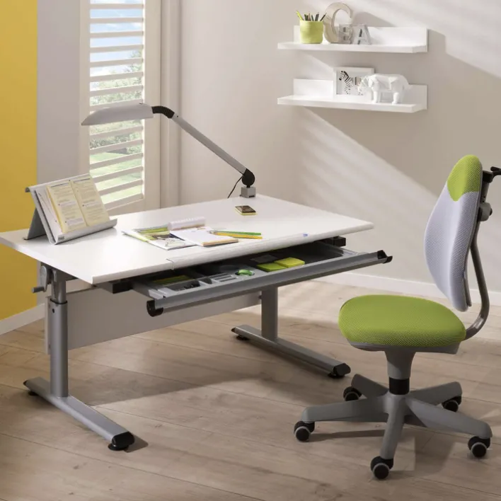 Geben Sie Ihrem Kind mit diesem vielseitigen Schreibtisch einen angenehmen Lernstart. Mit einem eigenen, anpassungsfähigem Schreibtisch macht es ihrem Kind sicher mehr Spaß die Hausaufgaben zu erledigen oder einfach mal ein Bild zu malen.
