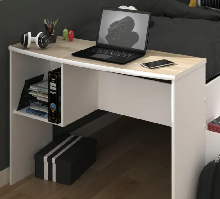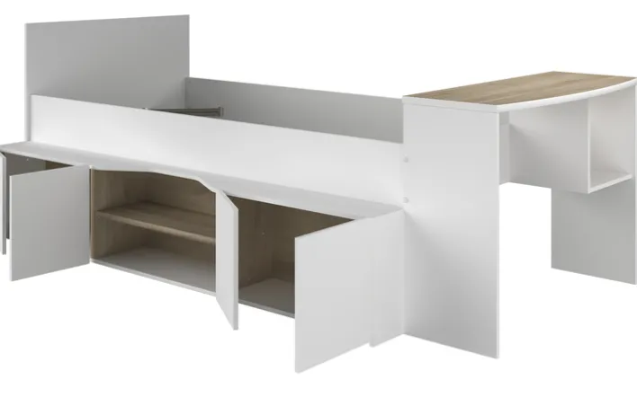 Das Parisot Hochbett CLEO 1 in Weiß ist mehr als nur ein Bett. Dank durchdachtem Design spart es Platz im Kinderzimmer, denn der Schreibtisch ist bereits integriert.