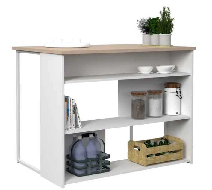 Das elegante 2er Buffet-Set SOCOOL besticht durch seinen großzügigen Stauraum und die enorme Flexibilität. Der offene Küchenschrank mit seinen Ablageflächen und Türen bietet Platz für Elektrogeräte und Küchenzubehör, während die Kücheninsel viel Arbeitsfläche bietet und zugleich als Küchentisch mit Hockern genutzt werden kann.