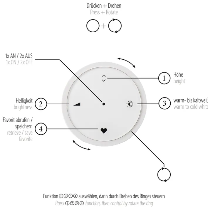 dimmbar: jaFarbtemperatur einstellbar: jaE-Lift®-Antrieb (Electric-Drive) motorisch höhenverstellbar: jaUp & Down Licht: jaMemory-Funktion: jahöhenverstellbar: ja