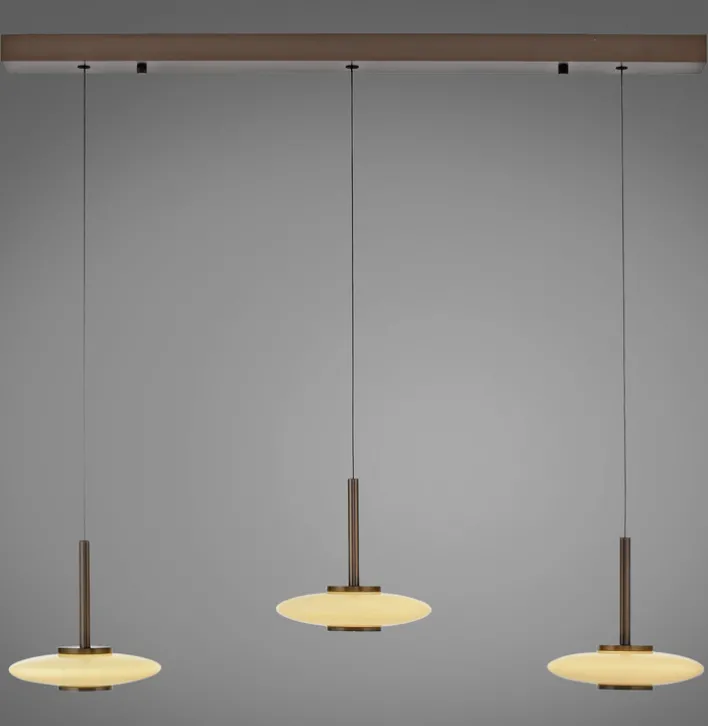 Zum LED Balkenpendel PURE VITRUM vom Label Paul Neuhaus gehören drei geschlossene Lampenschirme aus hochwertigem Opalglas. Mit ihrer flachen ovalen Form scheinen sie wie Objekte im Raum zu schweben. In jedem Schirm sind zwei LED-Leuchtmittel fest eingebaut. Eines davon hat eine Leistung von 5,1 Watt und das andere von 4,9 Watt. Zusammen ergibt das einen Energieverbrauch von rund 30 Watt sowie eine maximale Helligkeit von 3.399 Lumen, die über einen geeigneten Wanddimmer einstellbar ist. Via Roll-Federmechanismus lässt sich die Höhe der einzelnen Schirme zwischen 80 cm und 200 cm verstellen.
