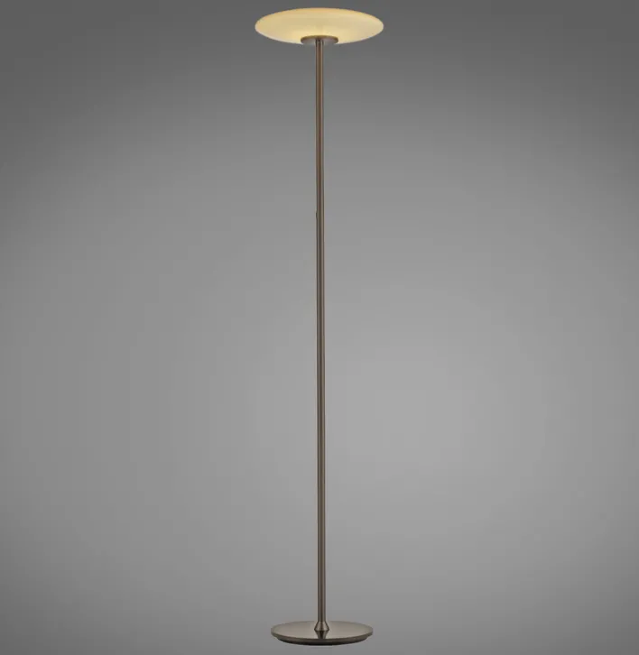 Bei einer Breite von 32 cm ist die LED Stehlampe PURE VITRUM 180 cm hoch. Sie besteht aus braunfarbigem Metall und wertvollem Opalglas. Praktisch: Die Stehleuchte ist über einen Tastdimmer einstellbar.