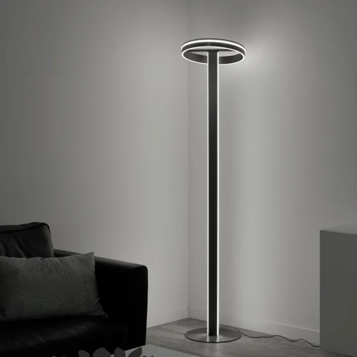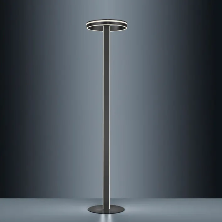 Ob im Wohn- oder Schlafzimmer: Besonders in moderne Räume fügt sich die in Anthrazit gehaltene Stehlampe von Paul Neuhaus mit Leichtigkeit ein. Der Schirm der 3-flammigen Lampe lässt sich verstellen, um ideale Lichtverhältnisse entstehen zu lassen. Doch auch das Licht selbst kann mithilfe der Fernbedienung reguliert werden. Sowohl die Lichtfarbe als auch die Lichthelligkeit sind anpassbar. Die für die Beleuchtung erforderlichen LEDs sind bereits fest verbaut und helfen, möglichst wenig Strom zu verbrauchen.