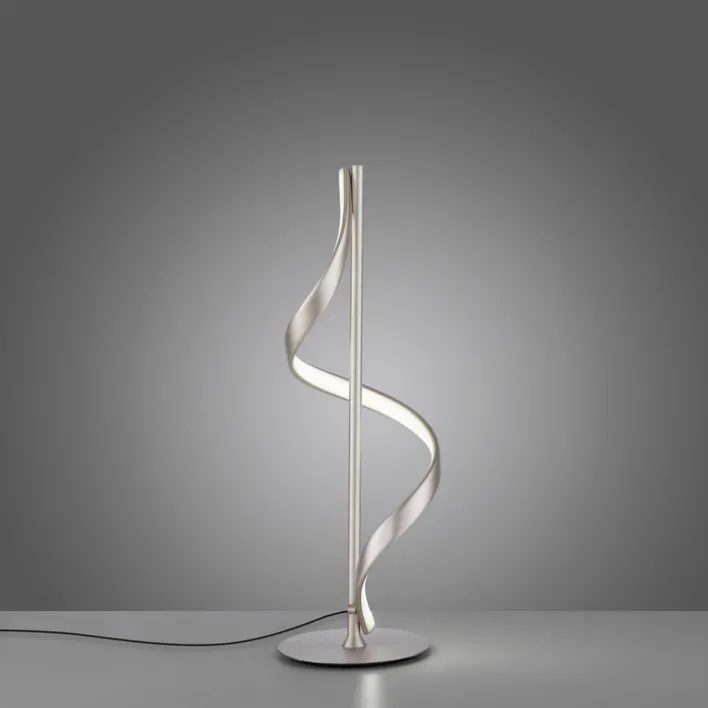 Die silberfarbige LED-Tischleuchte Q-SWING 15,5 cm aus Stahl setzt Maßstäbe: Der geschwungene Lichtstab beeindruckt optisch und spendet zugleich angenehmes Licht, das Nutzer per mitgelieferter Fernbedienung individuell einstellen.