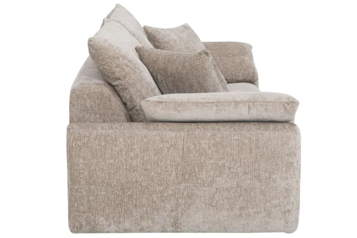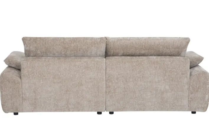 Das Sofa ist mit zwei Zierkissen und zwei Rückenpolstern ausgestattet, die zusätzlichen Komfort bieten. Der Polsteraufbau aus Schaumstoff sorgt für eine angenehme Sitzqualität. Die klaren Linien und die moderne Formgebung machen das Bigsofa zu einem stilvollen Mittelpunkt in jedem Wohnzimmer.