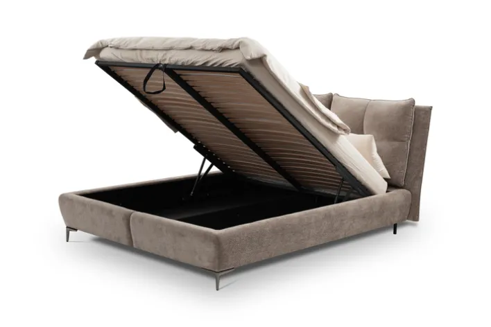 Wohin bloß mit nicht verwendeten Kissen und Decken? Mit dem modernen Polsterbett AURA stellt sich diese Frage zum Glück nicht mehr, denn es bringt einen praktischen Bettkasten mit. Zudem punktet AURA mit einem wunderschönen gesteppten Kopfteil, der eine Höhe von 113 cm hat und mit einem Keder ausgestattet ist. Die Füllung des Kopfteils besteht aus Silikon. Die Bettseite hat ohne Matratze eine Höhe von 39 cm, was einen bequemen Einstieg ermöglicht.