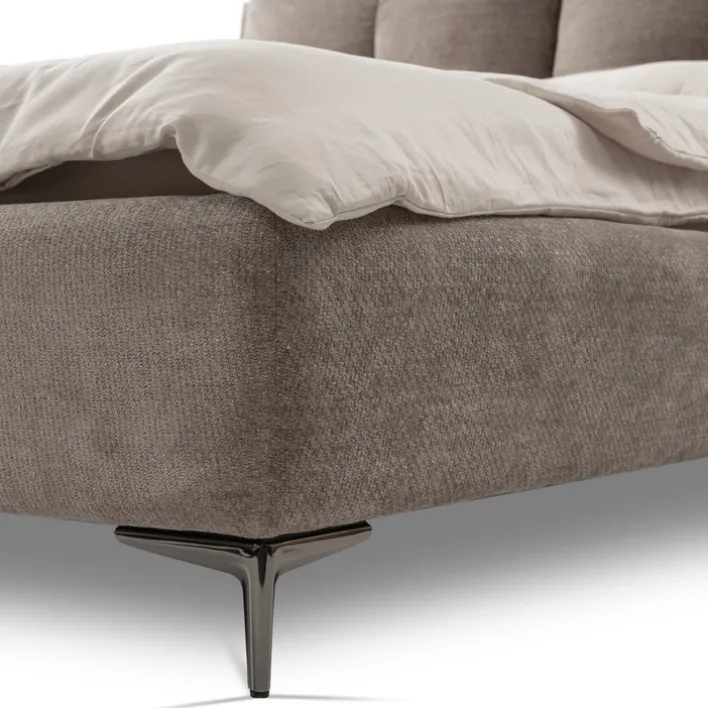 Polsterbett AURA in der Farbe Taupe hat eine Liegefläche von 180 x 200 cm und lädt zu gemütlichen und entspannten Nächten ein. Es wird inklusive Lattenrost geliefert und verfügt über einen hochwertigen Textilbezug.