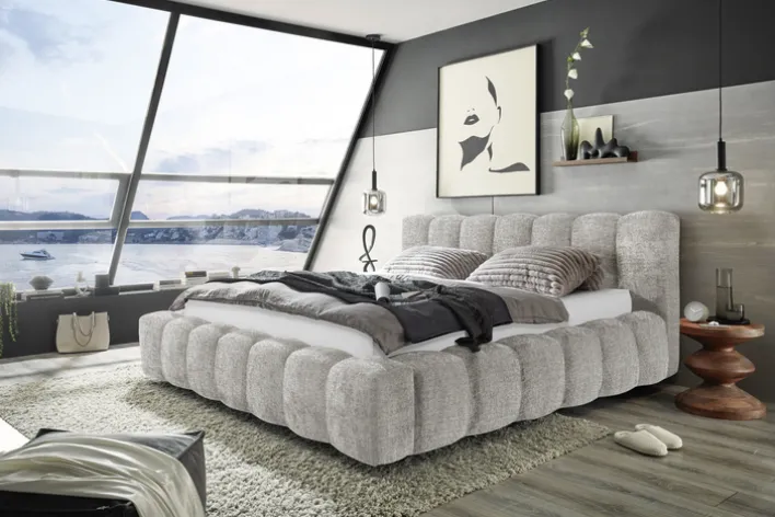 Das Bettgestell zeichnet sich durch seine stabile Konstruktion aus, die ein Gewicht von 107 kg aufweist. Die weiche Textur des Stoffes und die dezente Farbgebung in Grau unterstreichen die stilvolle Erscheinung des Bettes. Die klaren Linien und das schlichte Design machen das Polsterbett zu einem vielseitigen Möbelstück, das sowohl in modernen als auch in klassischen Schlafzimmern seinen Platz findet. Die Serie BEXLEY CREMONA steht für Qualität und durchdachtes Design, das Funktionalität und Ästhetik harmonisch vereint.