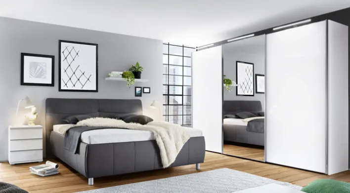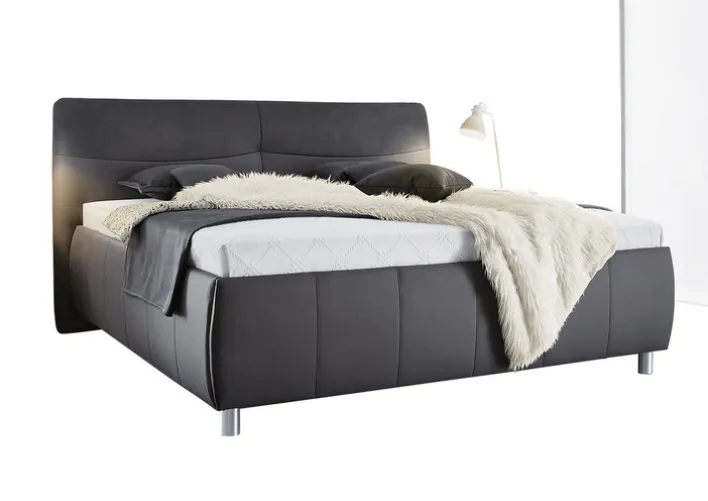 Das Polsterbett PALLAS bietet eine großzügige Liegefläche von 180 x 200 cm und ist ideal für Paare oder Einzelpersonen, die Wert auf Komfort legen. Der Bezug in Grau verleiht dem Bett eine zeitlose Ästhetik, die sich nahtlos in verschiedene Schlafzimmerstile einfügt. Die klaren Linien und das moderne Design des Bettes werden durch die stabilen Metallfüße ergänzt, die für eine solide Basis sorgen. Das Bett ist mit zwei Lattenrosten und zwei Matratzen ausgestattet, die einen Tonnentaschenfederkern mit fünf Zonen bieten. Dies gewährleistet eine optimale Unterstützung und Anpassung an den Körper, was zu einem erholsamen Schlaf beiträgt. Der Härtegrad der Matratzen liegt bei 2 bis 3, was eine mittlere bis feste Unterstützung bietet. Das Kopfteil ist leicht gepolstert und bietet zusätzlichen Komfort beim Sitzen oder Lesen im Bett. Das verwendete Textilmaterial ist pflegeleicht und langlebig, was die Alltagstauglichkeit des Bettes unterstreicht.