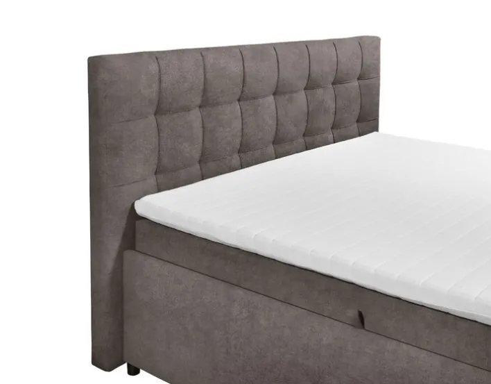 Das Bett ist mit einem hochwertigen Tonnentaschenfederkern ausgestattet, der in 7 Zonen unterteilt ist und einen mittleren Härtegrad von 2 bietet. Dies sorgt für optimalen Schlafkomfort und Unterstützung. Der Bezug besteht aus 100 % Polyester, einer strapazierfähigen Synthetikfaser, die für Langlebigkeit sorgt. Zudem verfügt das Bett über zwei integrierte Bettkästen, die zusätzlichen Stauraum bieten. Das gepolsterte Kopfteil mit seiner stilvollen Steppung verleiht dem Bett eine moderne und zugleich zeitlose Optik.
